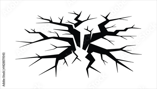 A design element silhouette of an impact creating shattered shards.