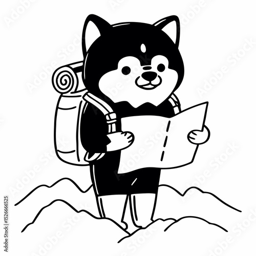 Cartoon character black shiba inu dog poses