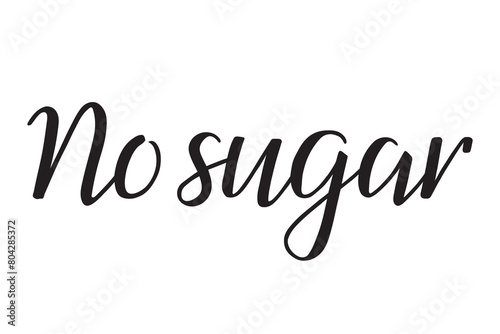 No sugar. The handwritten word sugar is in prohibition sign. Inscription in English. Black word shining through red no symbol on white background. Vector text. Food label, nutritional information.