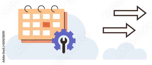 Gear alongside a calendar with a notification bell, symbolizing task management, productivity, scheduling, and organization. Ideal for concepts thumbs up workflow, reminders, planning, efficiency