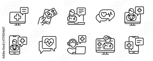 digital health care consultation icon vector set online doctor diagnosis medicals support assistant signs illustration