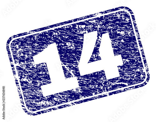 Calendar day 14. Number fourteen on a white paper with red border on blue background vector.