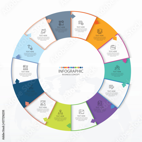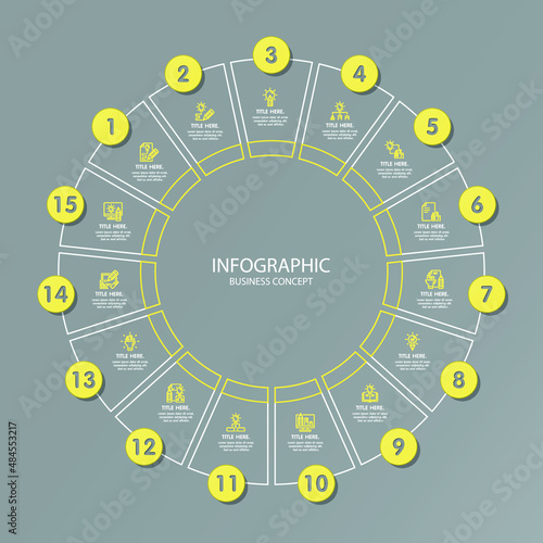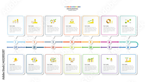 simple infographic vector with 14 interconnected parts, there are icons, numbers and colors that are good for your business