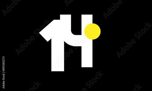 14th anniversary geometric logo. Overlap shapes for birthday design. Minimalist fourteen year celebration