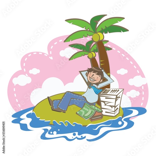 Businessman is lying in hammock with laptop and dreaming about big money. Comfort and recreation.