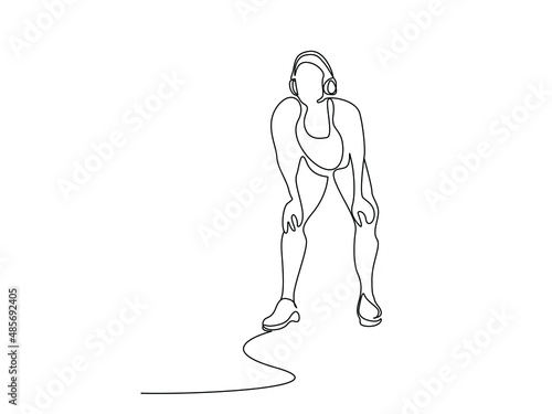 Girl enjoying on the bed continuous line art drawing isolated on white background. Meditation line art drawing. Vector illustration