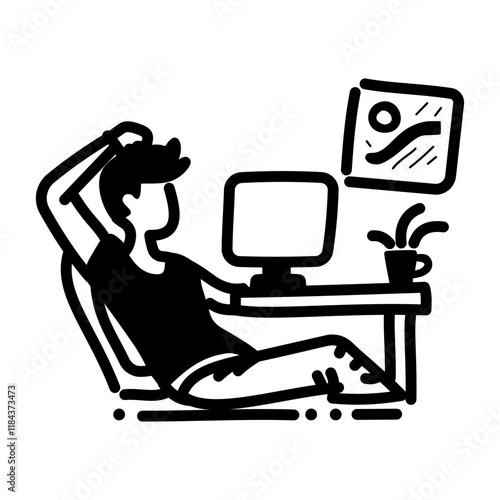 resting man icon, stick figure human silhouette sleeping on stickman couch, isolated vector illustration