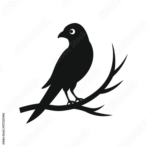 Elegant black silhouette of a distinctive water bird resting peacefully by the water's edge