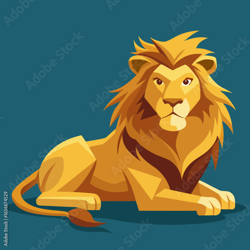 Create a majestic hand-drawn vector illustration of a lion resting, showcasing its powerful muscles and regal mane.  Focus on detail and accuracy.