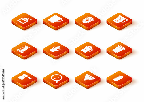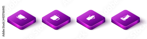 Set Isometric Coffee cup, , Teapot and Aeropress coffee icon. Vector