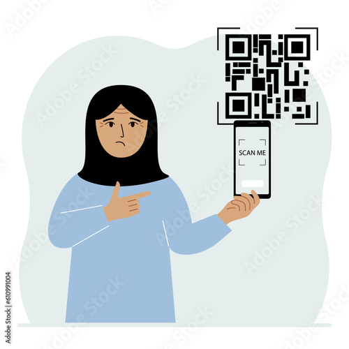 Muslim woman in hijab. A modest Muslim girl stands in a traditional Muslim dress. Muslim women in traditional hijabs. Vector people.