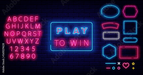 Red neon rectangle frame banner with light glow background. Led line electric signboard for game or casino. Abstract cyber shine template design. Futuristic party signage for modern music club