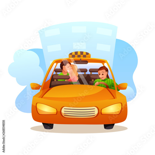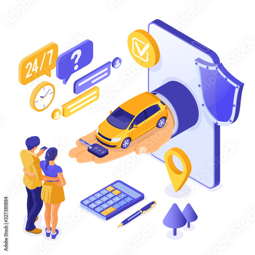 Online taxi concept. Taxi online service vector illustration in isometric style.