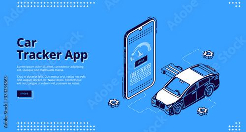 Online service application with map location, rent automobile vector illustration. Car sharing by cab auto transport, rental transportation and vehicle ride. Share navigation for passenger character.