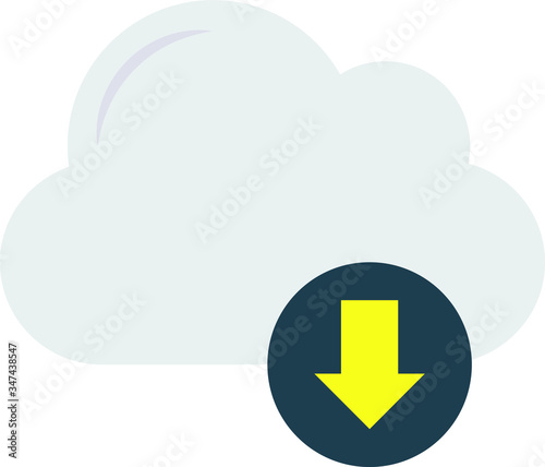 A sky blue cloud with a downward arrow inside symbolizes data downloading