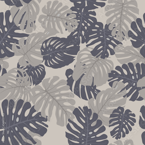 Seamless tropical vector pattern with tropical plants. Exotic background with monstera leaves. Fashion jungle print for design.