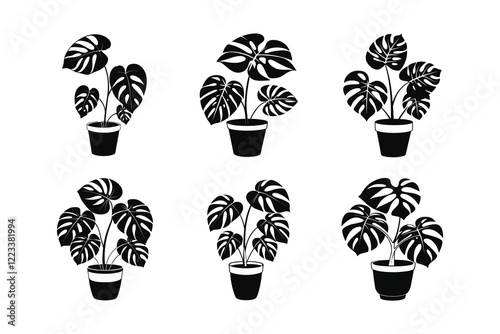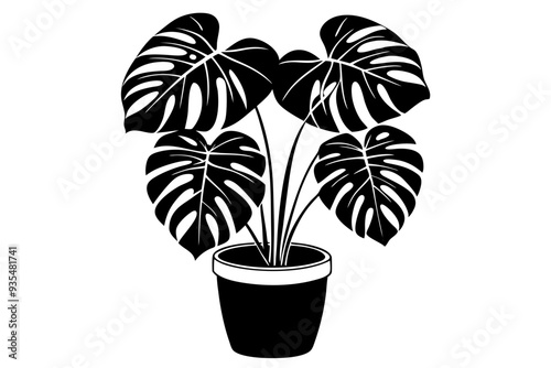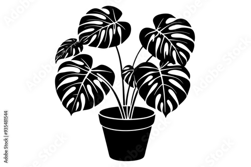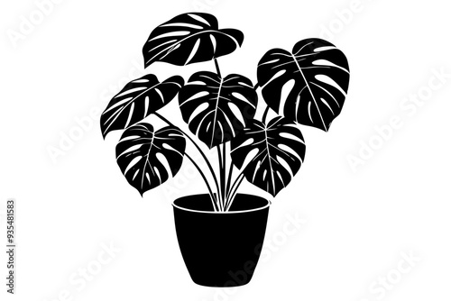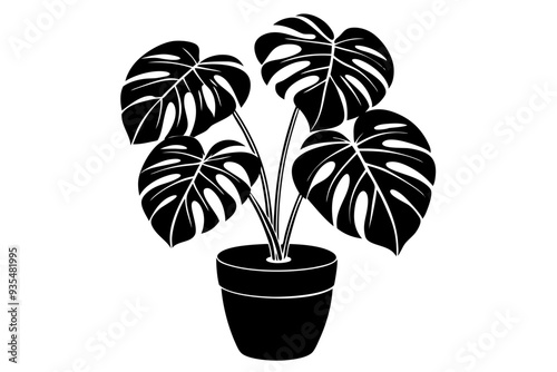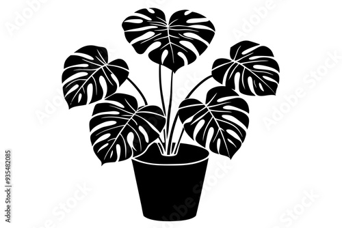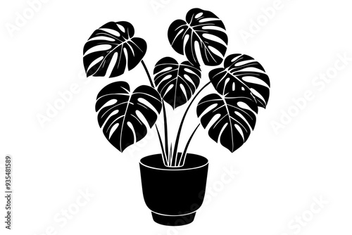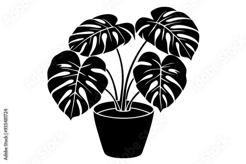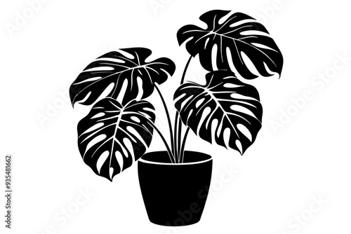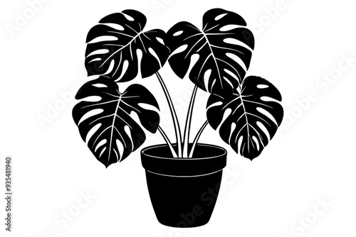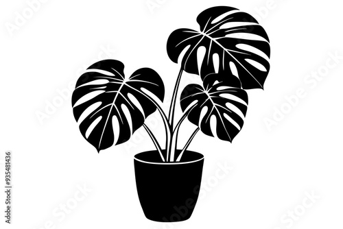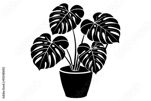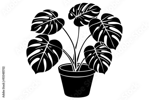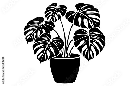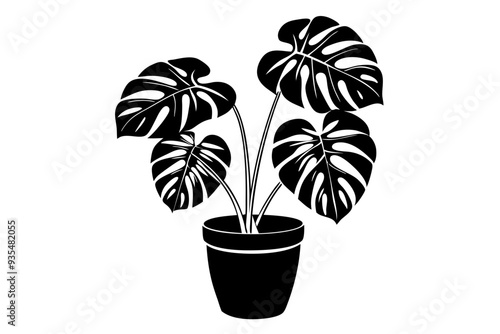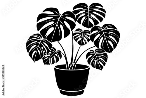 Monstera deliciosa plant in pot silhouette vector, potted plant vector silhouette vector Nature and Interior
