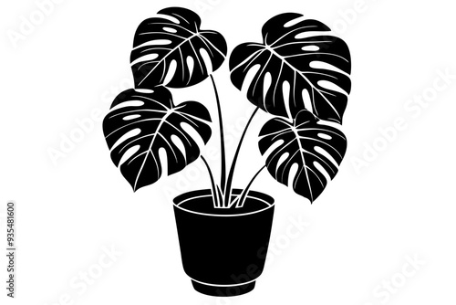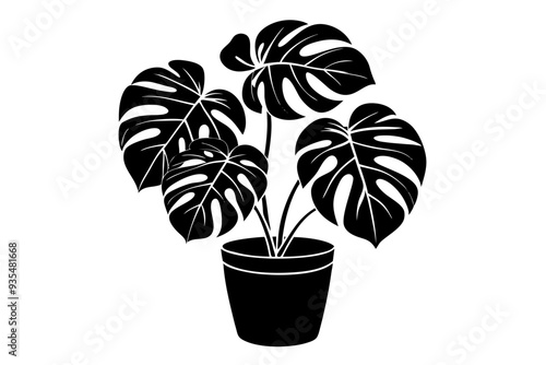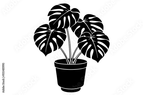 Monstera deliciosa plant in pot silhouette vector, potted plant vector silhouette vector