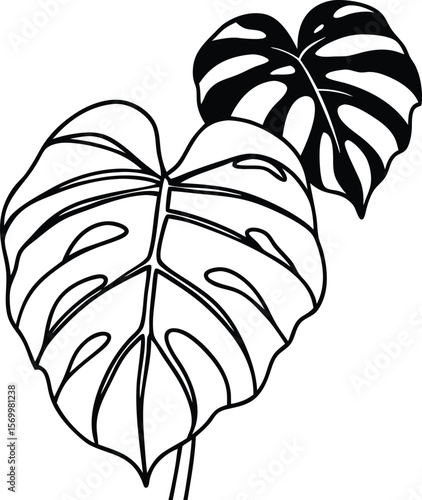 set of monstera deliciosa leaf, tropical foliage leaf, Liebm
