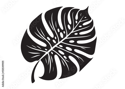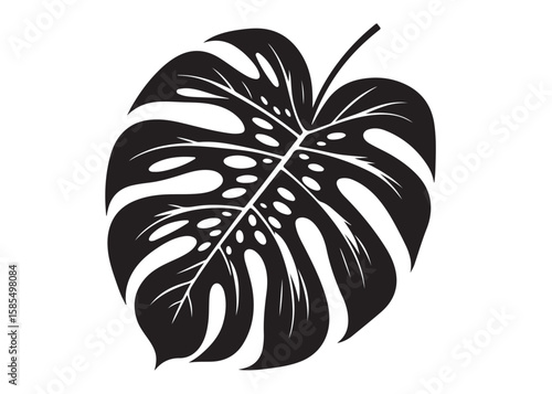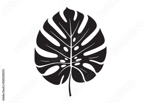 A minimalistic silhouette of a Monstera deliciosa leaf, showcasing its iconic shape and natural beauty in an artistic, monochromatic representation.