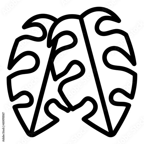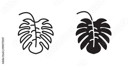 Monstera deliciosa plant leaf icon set in black and white stroke lines
