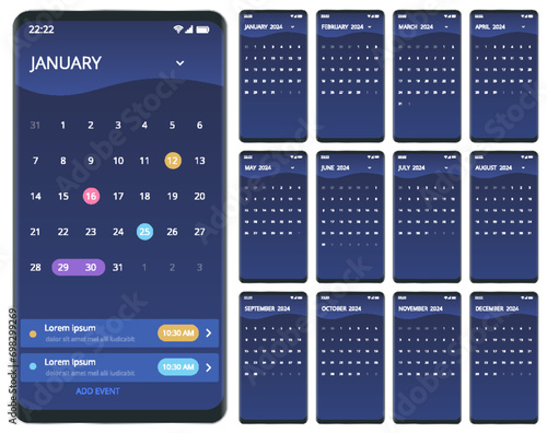 Mobile app calendar planner concept, Appointment calendar template UI UX, Smartphone calendar schedule agenda annual planning meeting application, Calendar events, Activity, Event app, Vector phone