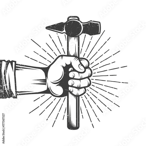 Silhouette of a strong, clenched fist holding a hammer vector art illustration.eps