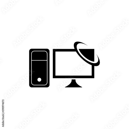 TV screen vector illustration isolated on green color background, black flat lcd television display or monitor