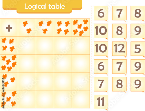 Mathematics children educational game . Match objects with numbers. Study addition and subtraction for kids and toddlers