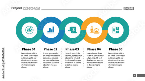 5 phase project management infographic template banner with big circle and rectangle box with 5 point list information for slide presentation