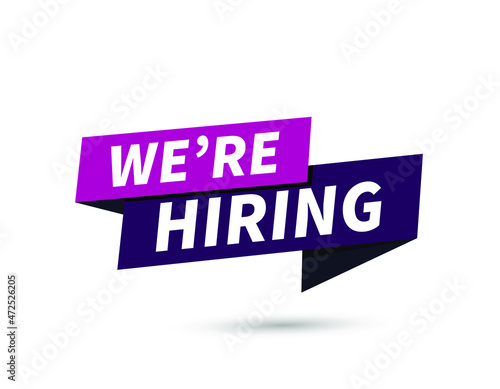 We are hiring label sign. Black and pink origami style sticker. Vector