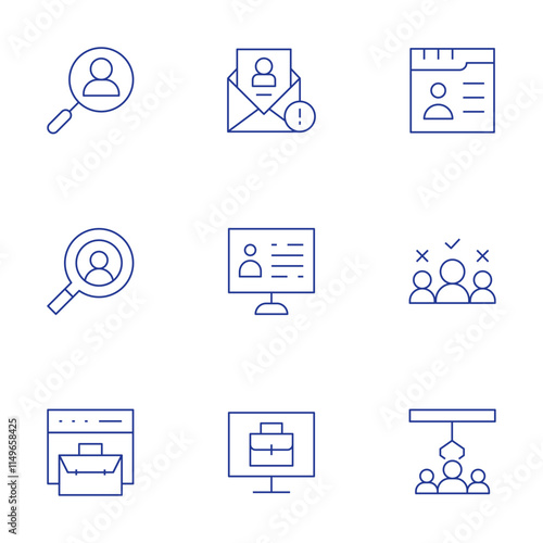 Profile information and File management related line icons. Human resources and Recruitment vector linear icon set.