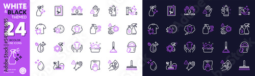 Dirty water, Washing hands and Coronavirus spray line icons for website, printing. Collection of Wash hand, Washing cloth, Wash hands icons. Cleaning mop, Dishwasher timer. Vector
