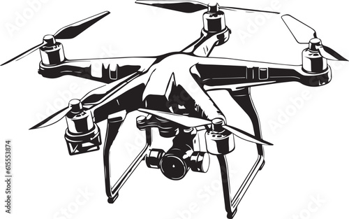 Drone photograph logo vintage hand drawn. for professional modern studio video graphic. monitoring work progress and result of farm agriculture, building, and as toy of kid