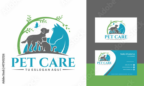 dogs and cats with the concept of tree of life, health clinic, grooming, logo design animal.