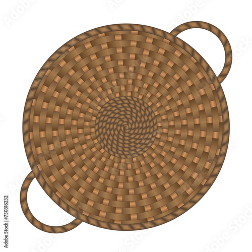 Light brown vector round wicker basket handmade