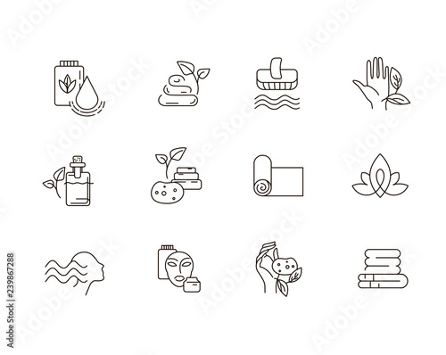 Meditation and wellness icons featuring yoga mat, candle, and herbal tea
