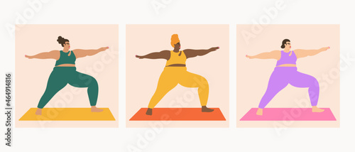 Woman doing yoga exercises on the mat. Yoga in nature. Wellness, healthy lifestyle, sport, flexibility, fitness concept. Vector illustration for poster, banner, cover, card.