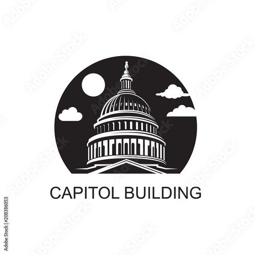 United States Capitol building icon in Washington DC isolated on white backgrpound