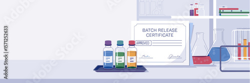 Modern minimalist science lab vector illustration with beakers and shelving