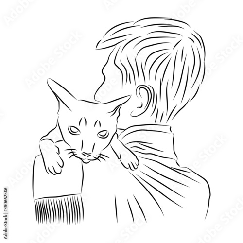 human hand stroking the cat, vector illustration