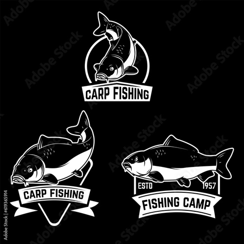 Carp fishing logo vector illustration, perfect for fish business supplier company logo, emblems, labels, badges and design elements, club logo and tournament