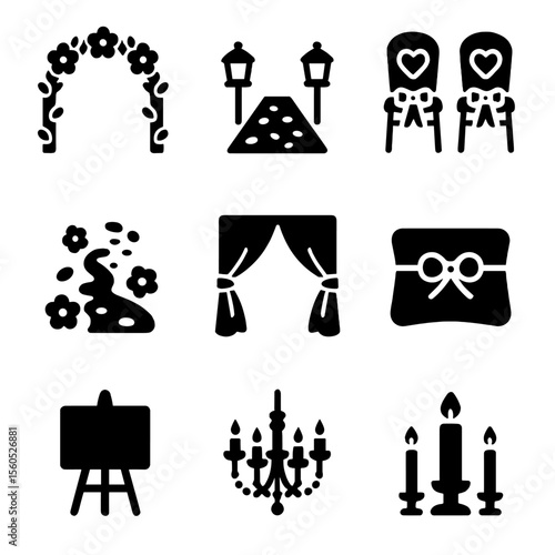 Wedding and event silhouette icons set – solid, elegant, ceremonial symbols