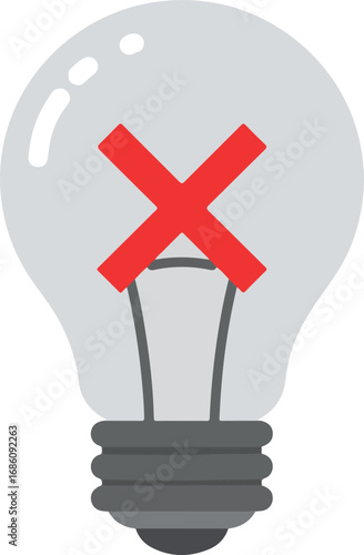 Light bulb with cross mark icon. Wrong idea and rejected solution symbol