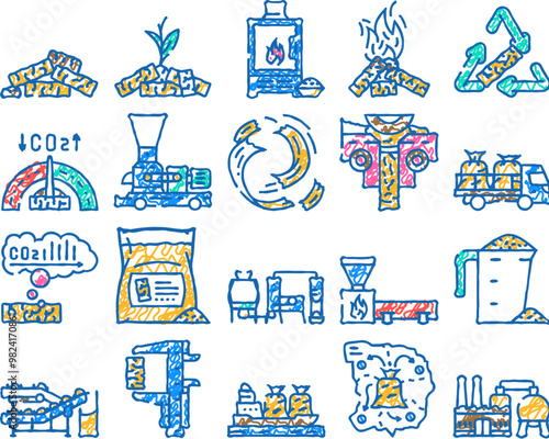 Stove and pellet icons designed in line art style can be used for web and print