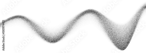 Black halftone wave background. Abstract grainy fluid texture. Dotted curved dot flow wallpaper. Grit swoosh overlay element for poster, banner, brochure, flyer, leaflet, template.