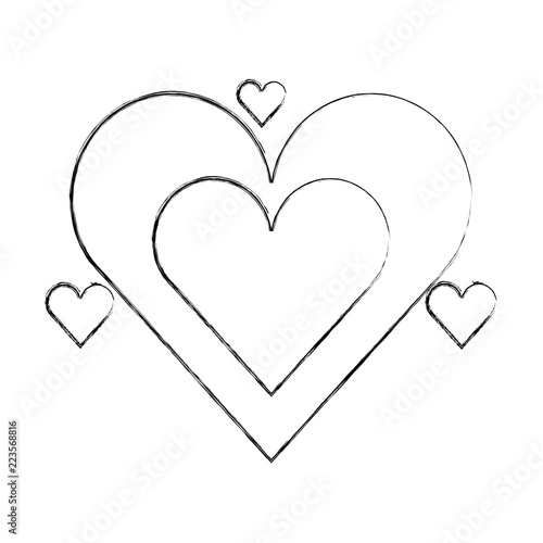 Two hearts are drawn with line. Continuous one line drawing of two hearts on white background. Hearts as a symbol of love