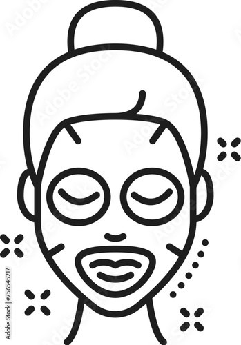Face skin mask, cosmetology care and mesotherapy icon. Face skin health, makeup product or spa salon facial mask procedure line symbol. Woman beauty and skincare cosmetics thin line vector icon
