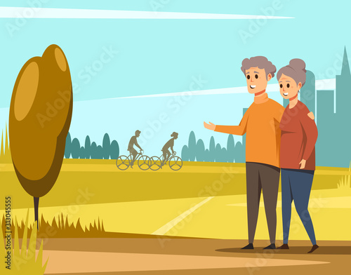 Elderly leisure activities. Leisure elderly people, couple old leisure, outdoor together illustration vector