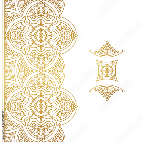 Seamless gold oriental pattern. Islamic horizontal background. Arabic linear texture. Vector illustration.